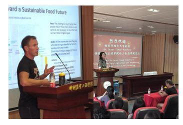 JesusSimal-Gandara教授在讲座中幽默风趣、表情丰富,引起同学们笑声掌声不断。在交流互动环节,不少同学踊跃发言,就可持续发展、饮食方式、粮食系统变革等问题与教授进行了积极互动,现场气氛轻松愉悦。