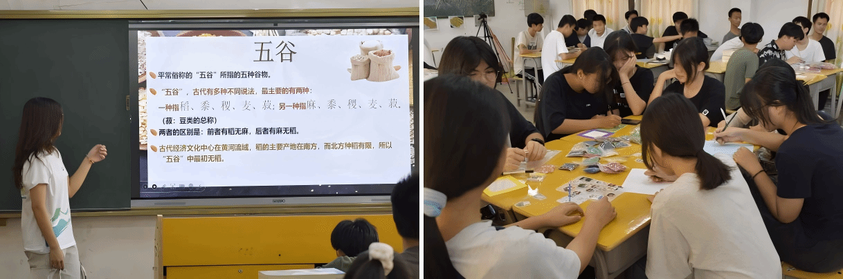 服务团成员蔡馥琳以“五谷作画”压轴义教课堂,带领学生品味重庆非遗五谷杂粮画魅力。她强调,五谷画的价值在于文化底蕴,义教的意义在于知识传播和精神火种。学生在卡纸上创作,作品留存职校、根植心间,化作传承优秀传统文化的动力。